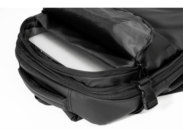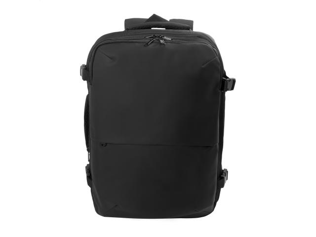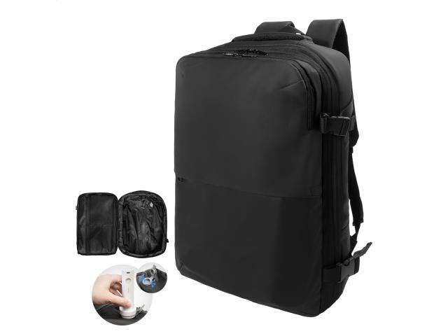 Waterproof, extendable compression backpack with zipped compartments, built-in vacuum compression compartment, padded laptop (15") compartment and zipped front pocket. With side buckles, trolley strap, padded back and shoulder straps. PU coated 600D polyester. Including vacuum pump with USB rechargeable battery (1500 mAh).