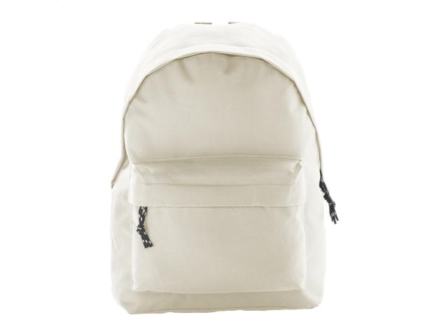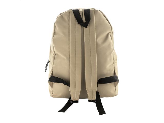 Backpack with zipped front pocket, padded back and shoulder straps. 600D polyester.