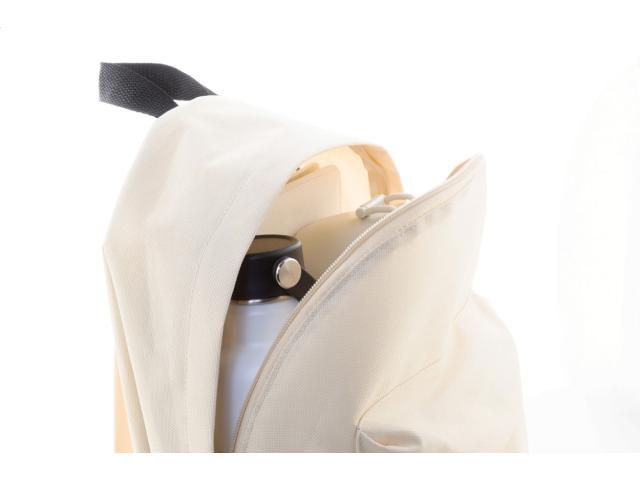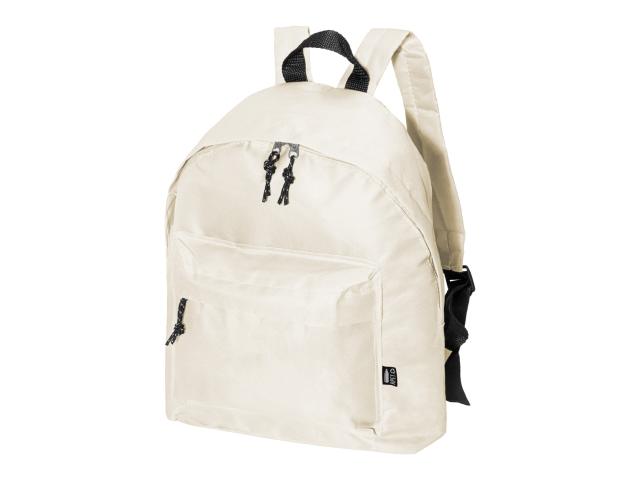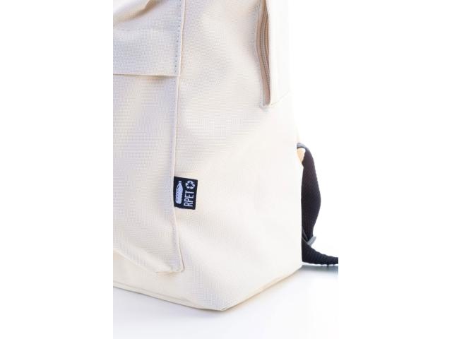 RPET backpack with zipped main compartment, zipped front pocket, padded back and shoulder straps. 600D RPET polyester, with distinctive RPET label.