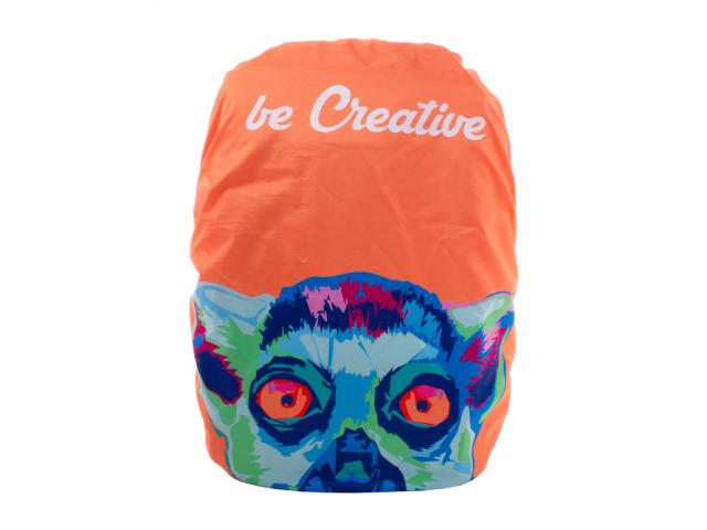 Custom made, 190T RPET polyester cover for 10-20L backpacks, with elastic band and distinctive RPET label. With all over sublimation printed graphics. MOQ: 25 pcs.