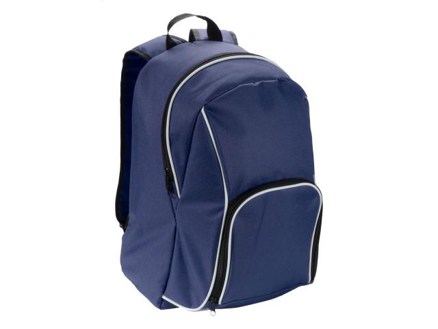 Backpack with zipped pockets, padded back and shoulder straps. 600D polyester.