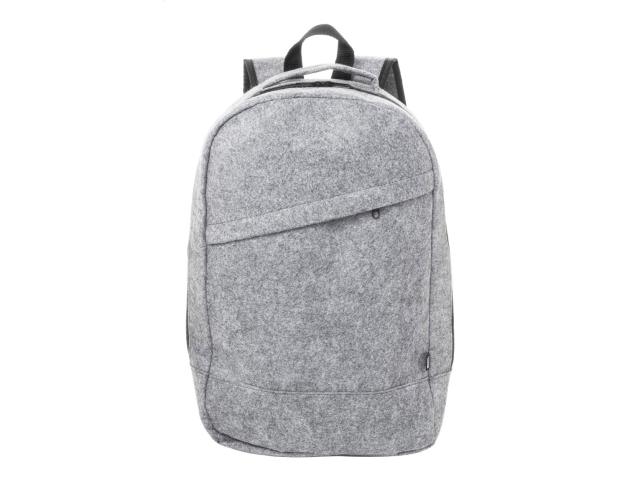 RPET felt backpack with zipped main compartment and front pocket. With laptop (15") compartment, trolley strap and padded shoulder straps. With distinctive RPET label.