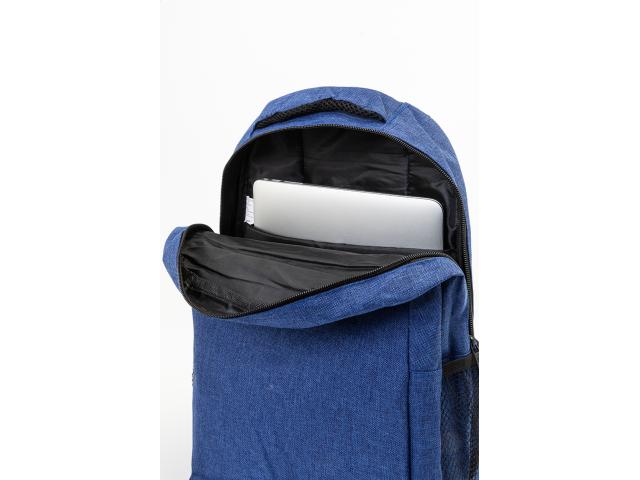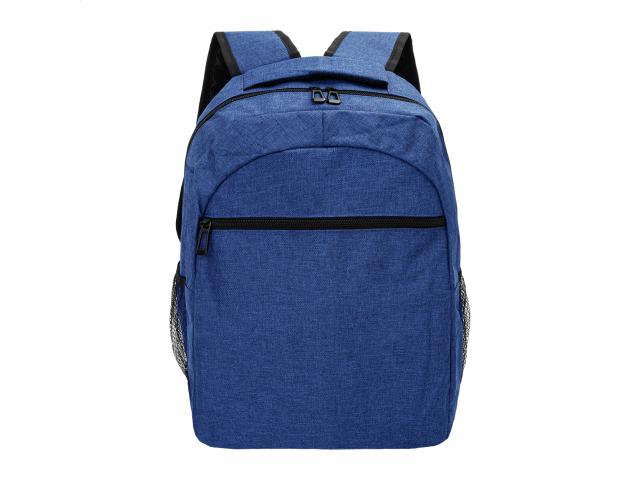 Backpack with zipped compartments, padded back, shoulder straps and laptop compartment (15"). 600D polyester.