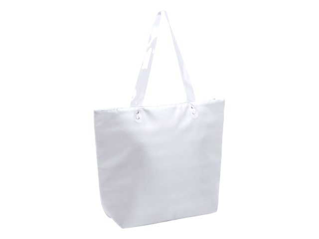 Zipped beach bag with transparent PVC handle. 210D polyester.