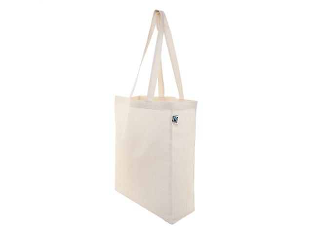 Reusable, Fairtrade cotton shopping bag with gusset and long handles. 100% Fairtrade cotton, 180 g/m². With distinctive Fairtrade label.