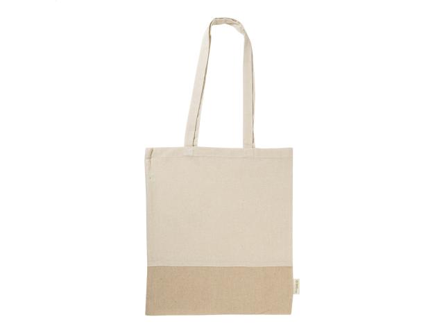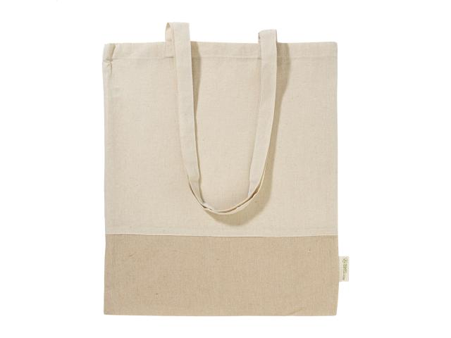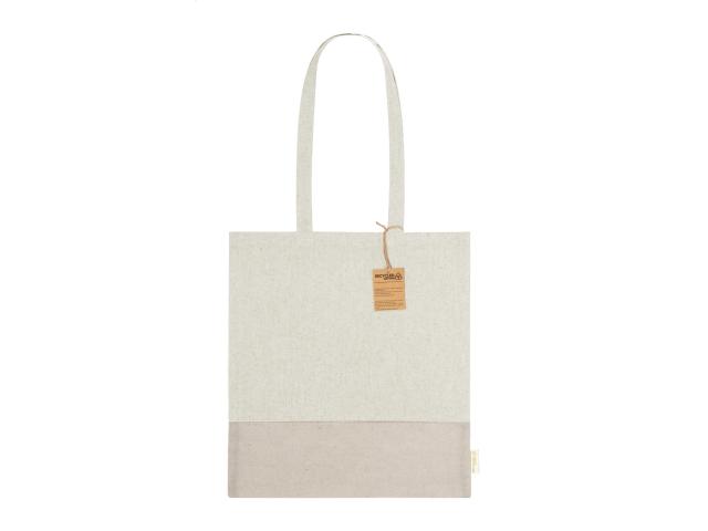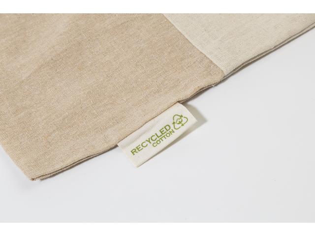 Two-tone recycled cotton shopping bag with long handles and distinctive recycled cotton label. 100% recycled cotton, 120 g/m².
