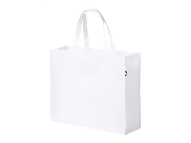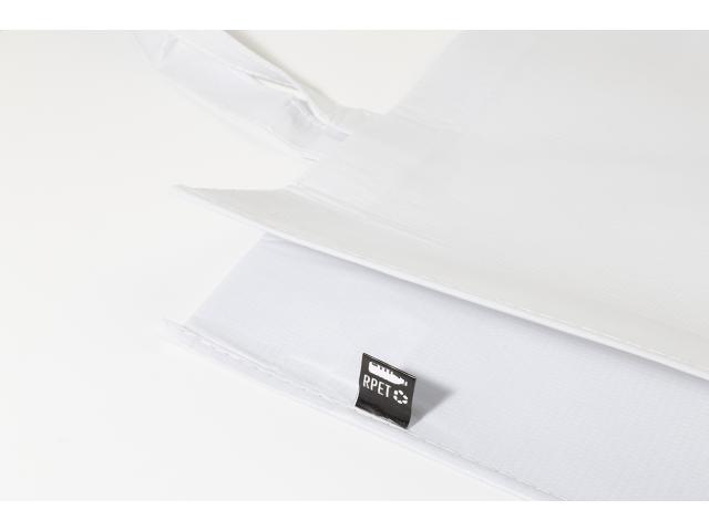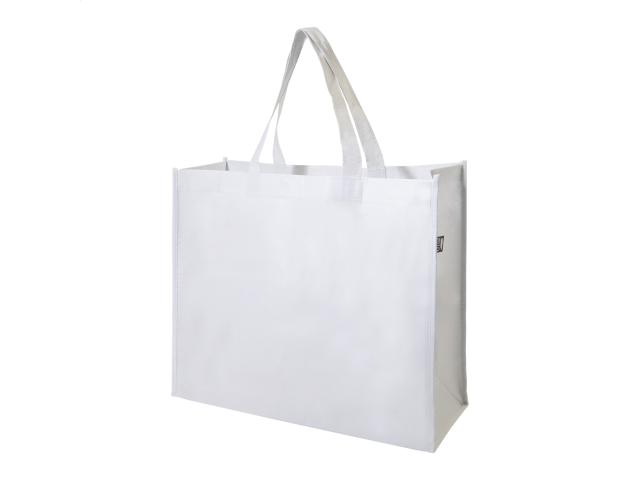 Laminated RPET shopping bag with gusset and medium handles, RPET polyester 105 g/m². With distinctive RPET label.