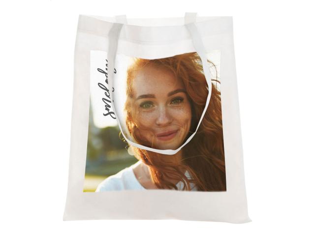 Non-woven shopping bag with long handle. Ideal for sublimation printing.