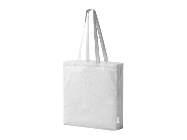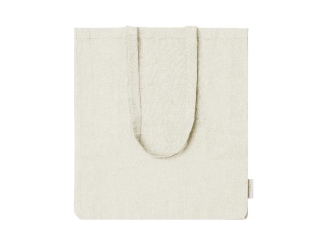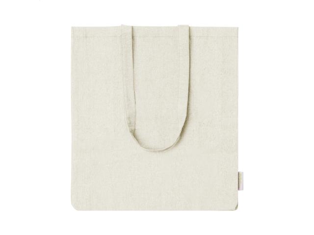Recycled cotton shopping bag with gusset, long handles and distinctive recycled cotton label. 100% recycled cotton, 140 g/m².