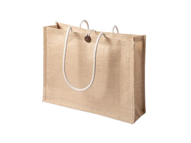 Laminated jute beach bag with braided cotton handles, 320 g/m².