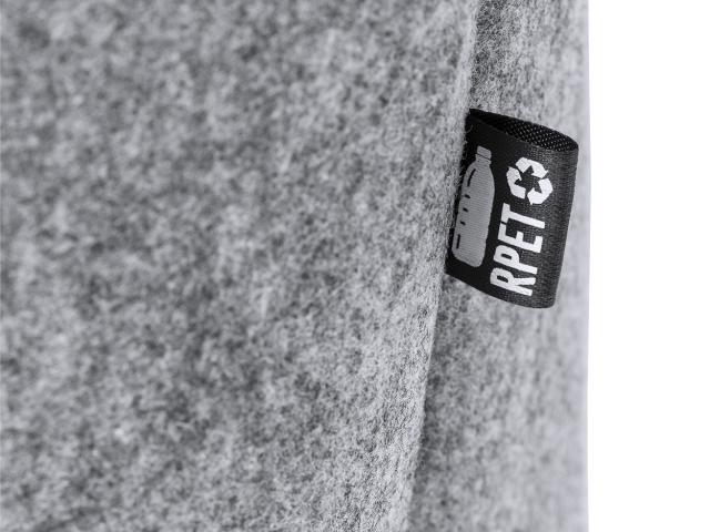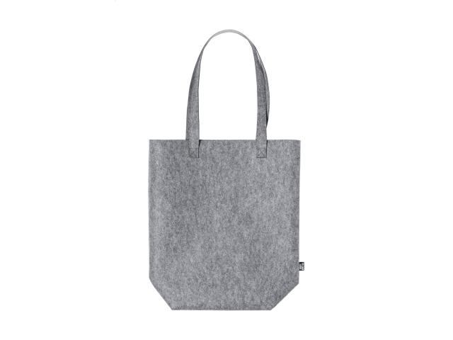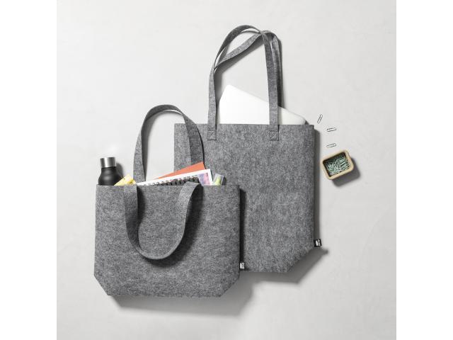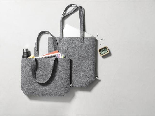 RPET felt shopping bag with extra long handles and bottom gusset. With distinctive RPET label.