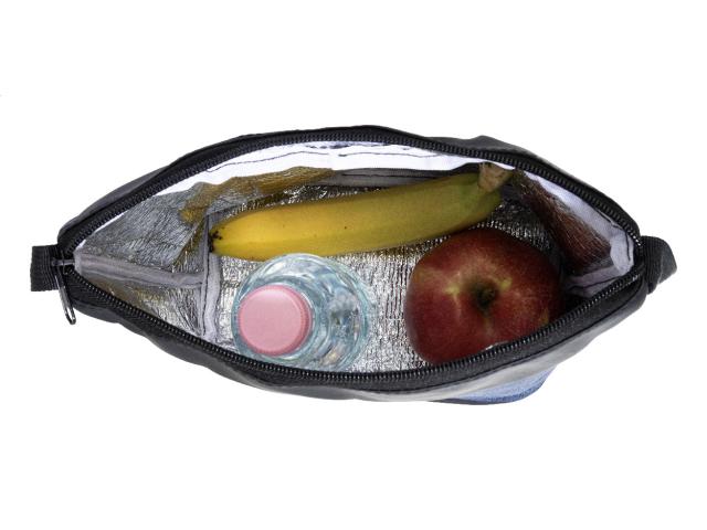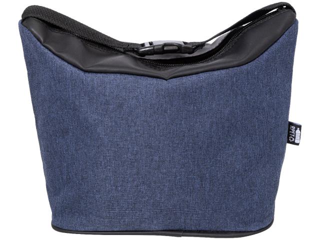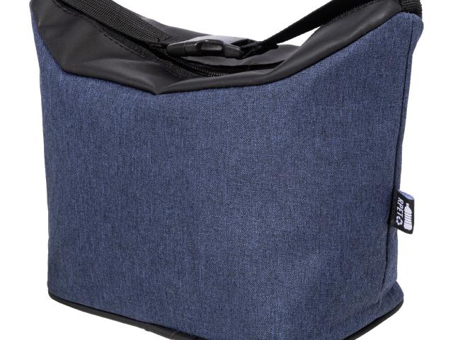 600D RPET polyester zipped cooler bag with soft recycled PU leather details, aluminium padding and buckle carry strap. With distinctive RPET label.