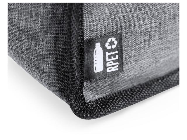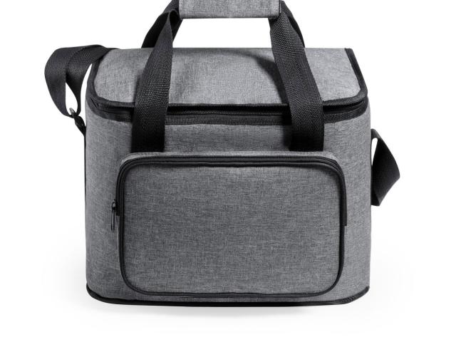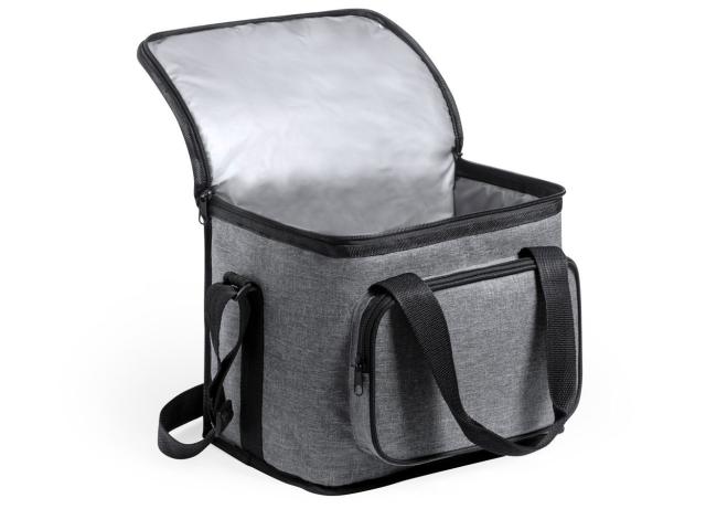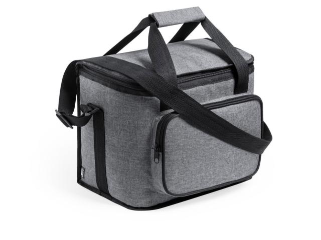 RPET cooler bag with PEVA padding, zipped compartments, handles with velcro and adjustable shoulder strap. With distinctive RPET label. 600D RPET polyester.