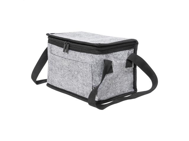 Zipped, RPET felt cooler bag with aluminium padding, front pocket and side handles. With distinctive RPET label.