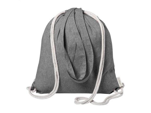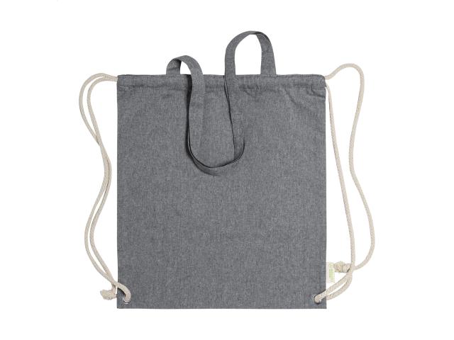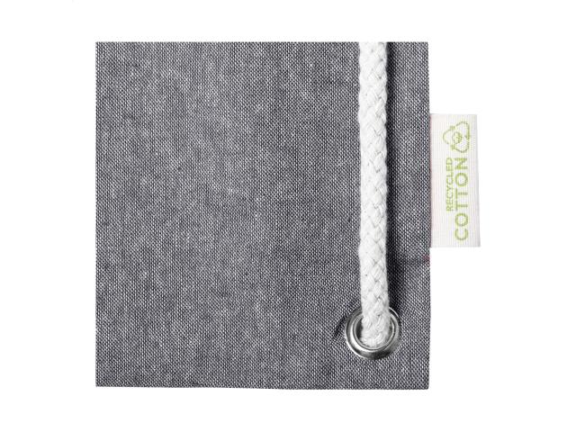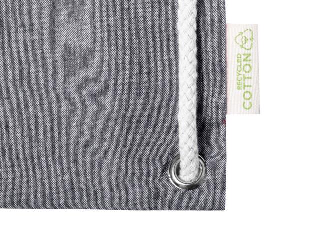 Recycled cotton drawstring bag with thick braided cords and long handles. It can be also used as a shopping bag. 100% recycled cotton, 140 g/m².