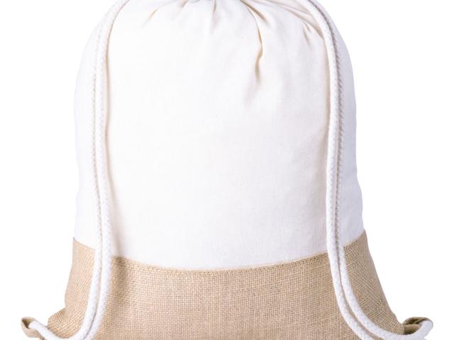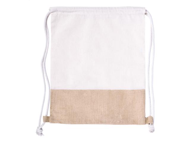 Drawstring bag in combination of jute and cotton (120 g/m²), with braided strings.