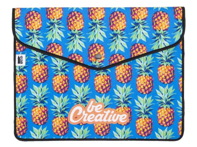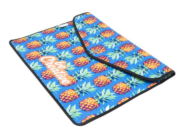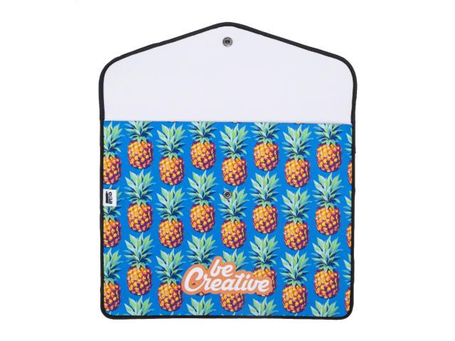Custom made, RPET neoprene document bag or laptop pouch with all over sublimation printed graphics. Fits laptops up to 15". MOQ: 25 pcs.
