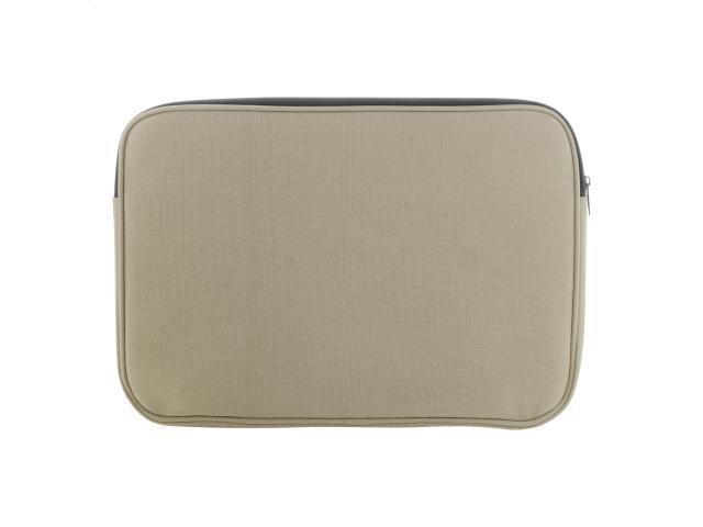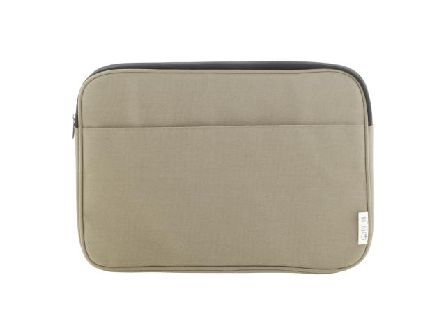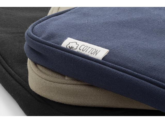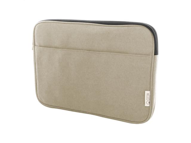 Fully padded recycled canvas laptop bag with zipped compartment and front pocket. Fits laptops up to 15". 70% recycled cotton and 30% RPET polyester. With distinctive recycled cotton label.