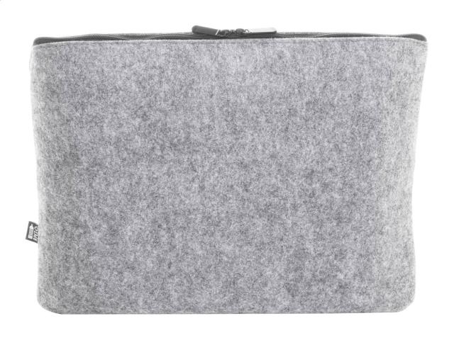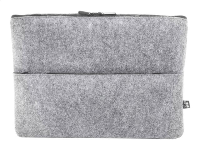 RPET felt laptop bag with zipped compartment and front pocket. Fits laptops up to 15". With distinctive RPET label.
