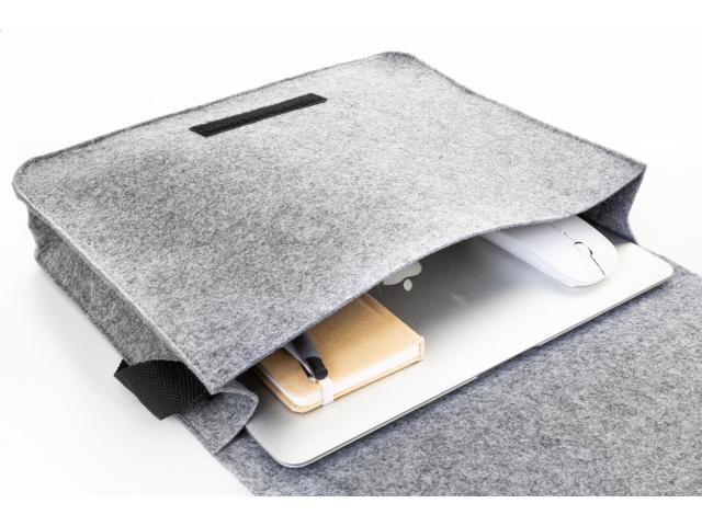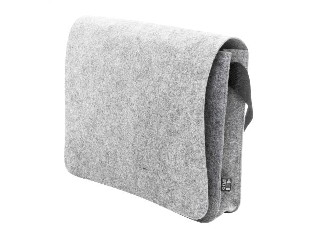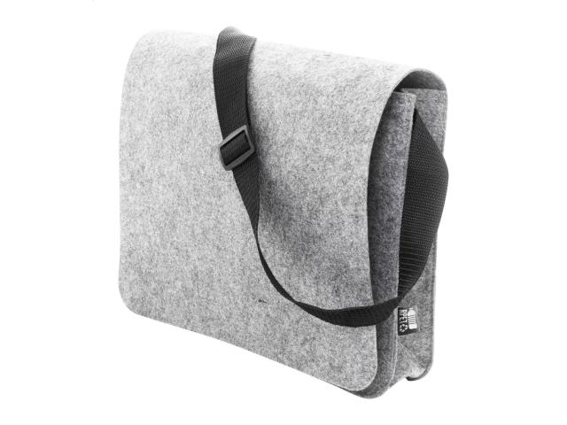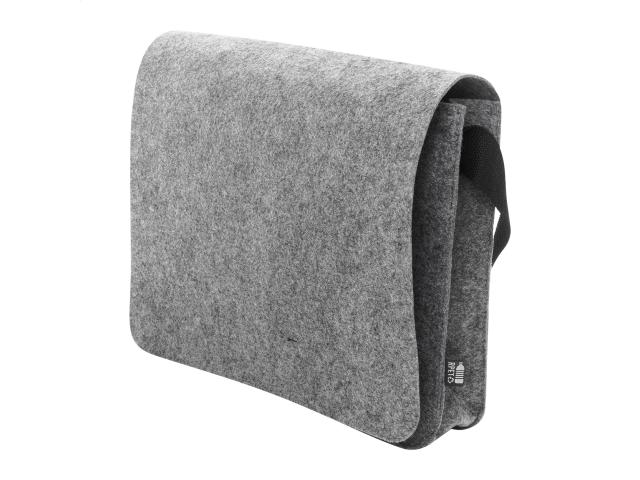 RPET felt messenger laptop bag with adjustable shoulder strap. Fits laptops up to 15". With distinctive RPET label.
