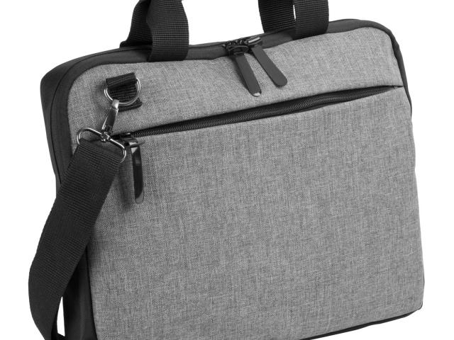 Document bag with padded laptop compartment (15"), zipped side pocket and adjustable shoulder strap. 600D duotone polyester.
