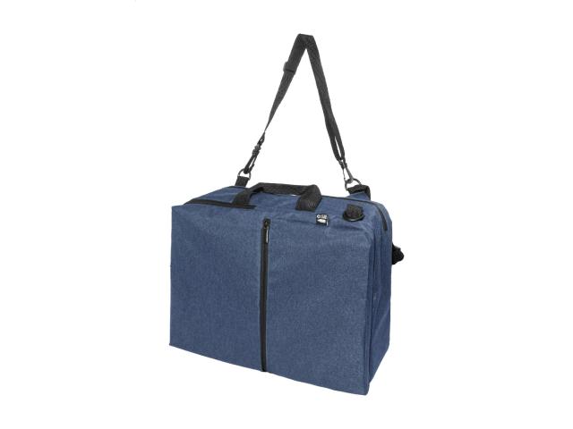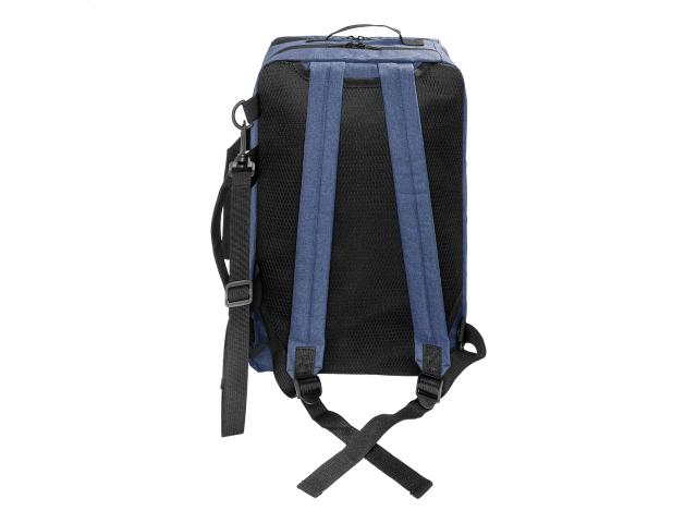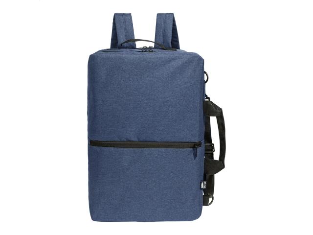 Dual function RPET backpack and document bag with zipped compartments and padded laptop (15") compartment. With padded back and shoulder straps. Includes additional detachable shoulder strap for use as a document bag. 600D RPET polyester, with distinctive RPET label.