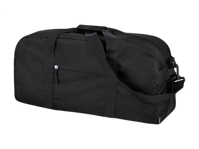 RPET sports bag with zipped main compartments and front pocket, adjustable shoulder strap. 600D RPET polyester, with distinctive RPET label.