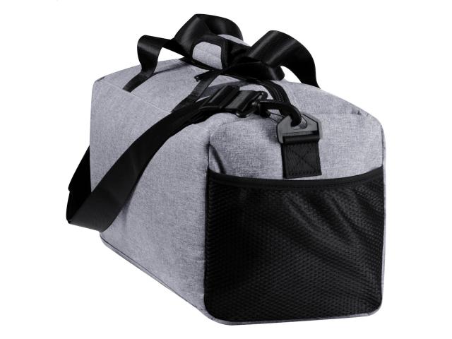 Sports bag with zipped compartment, mesh side pockets and adjustable shoulder strap, 600D polyester.