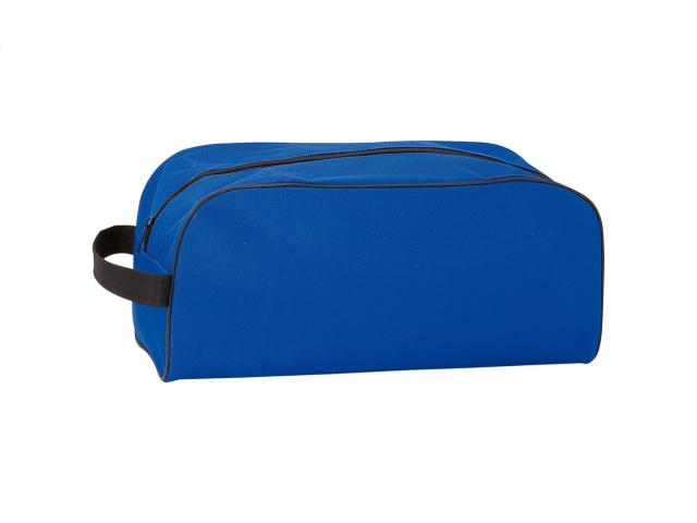 Zipped, 600D polyester bag for storing a pair of shoes.