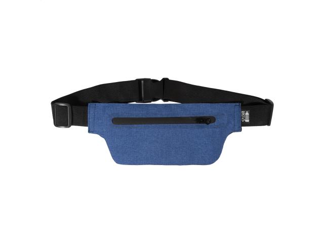 Slim RPET waist bag with zipped compartment and adjustable elastic strap. 300D RPET polyester, with distinctive RPET label.