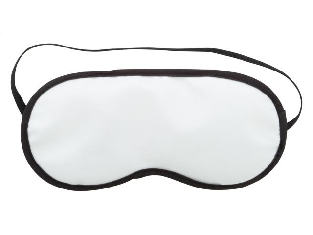 Custom made travel eye mask in polyester (140 g/m²), with foam padding, black piping and strap. With all over sublimation printed graphics. MOQ: 100 pcs.
