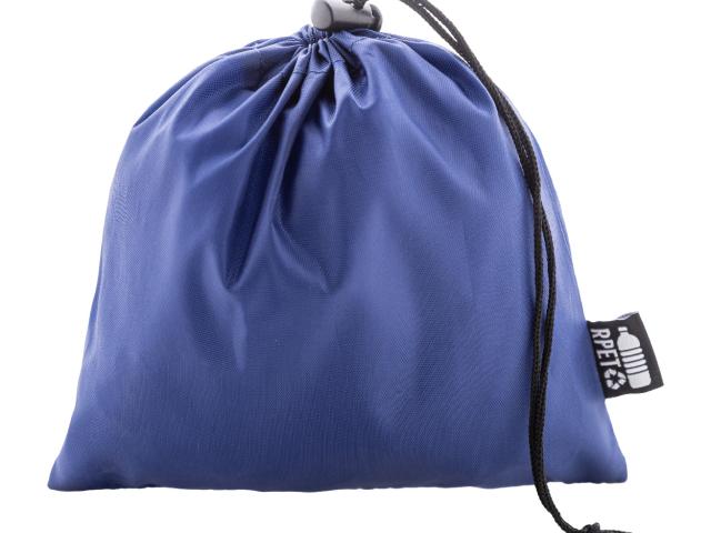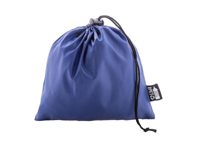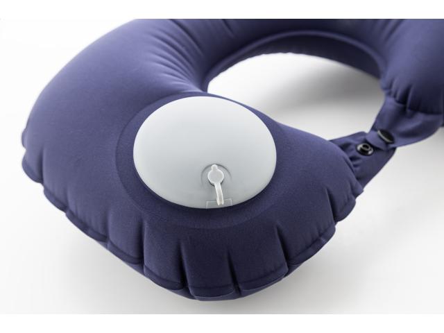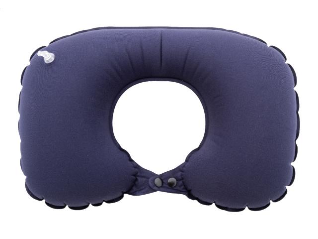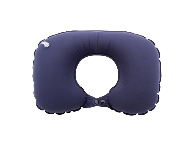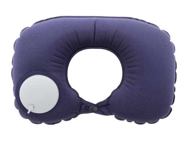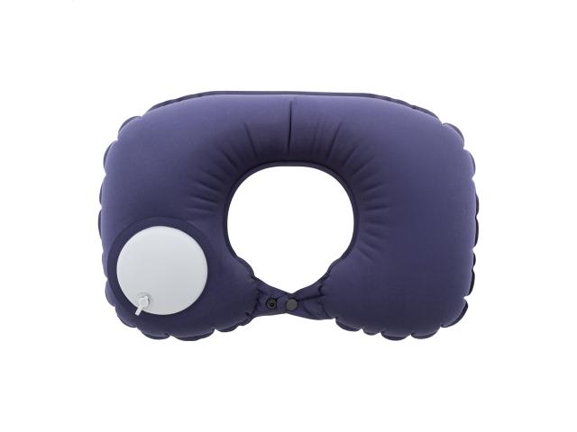 Inflatable RPET polyester travel pillow with built-in pump for easy inflation and deflation. In matching fabric drawstring pouch. With distinctive RPET label.
