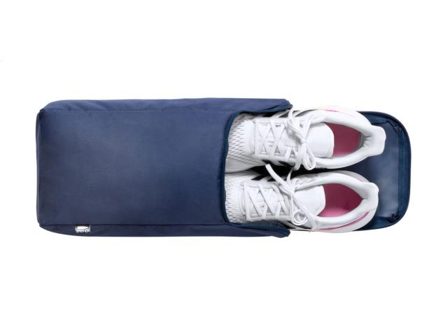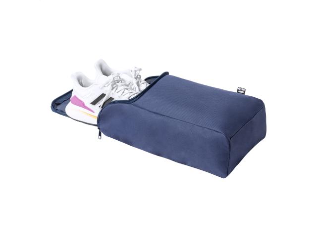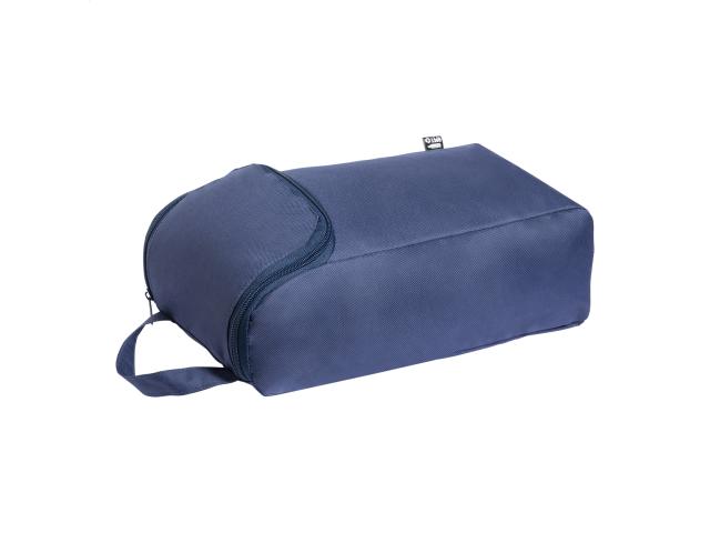 Zipped, RPET bag for storing a pair of shoes. 600D RPET polyester with distinctive RPET label.