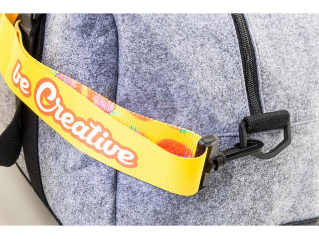 Custom made, length-adjustable polyester shoulder strap with plastic carabiners. With sublimation printed graphics on both sides. Suitable for shoulder bags, document bags, or sports bags. MOQ: 50 pcs.