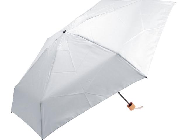 Manual, windproof 3-folding mini umbrella with 6 panels in matching colour pouch. With metal frame, fibreglass ribs, bamboo handle and cotton hand strap. 190T RPET pongee, with distinctive RPET label.
