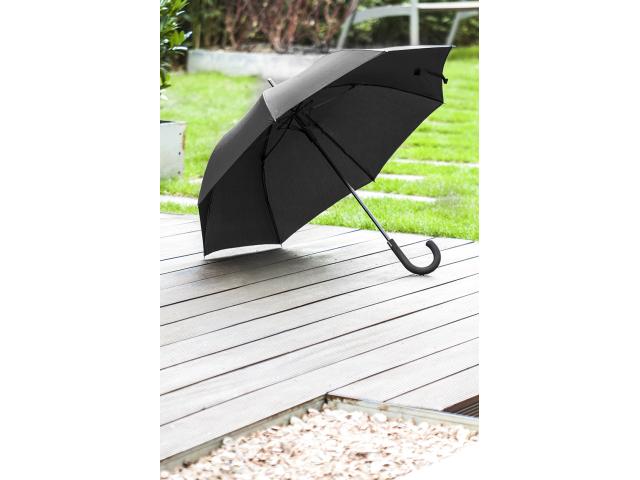 Automatic, windproof umbrella with 8 panels, rubberized handle, metal shaft and fibreglass frame. 190T pongee. In carry pouch. André Philippe brand product.