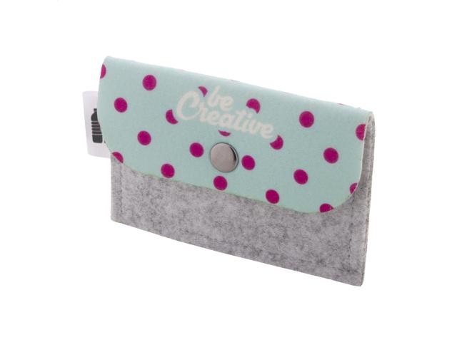 Custom made, RPET felt purse with full colour printed flap and back side. With distinctive RPET label. Price includes sublimation printing. MOQ: 50 pcs.