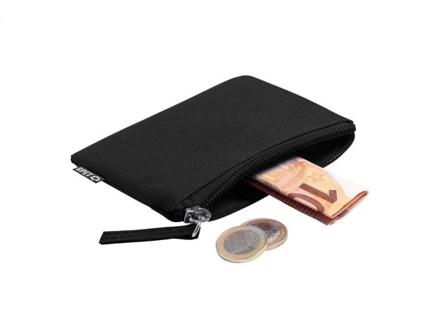 Zipped purse in 600D RPET polyester, with distinctive RPET label.