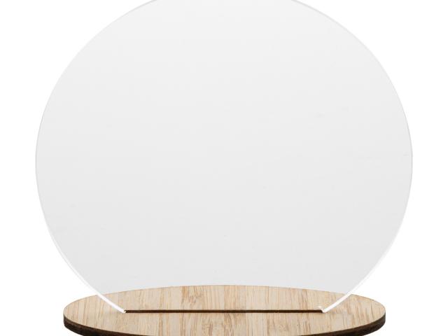 Custom made, snow globe shaped acrylic Christmas decoration with full colour graphics and bamboo stand. Price includes UV LED printing. MOQ: 50 pcs.