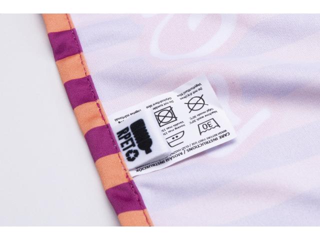 Custom made, RPET microfibre (170 g/m²) table runner with all over sublimation printed graphics. MOQ: 25 pcs.