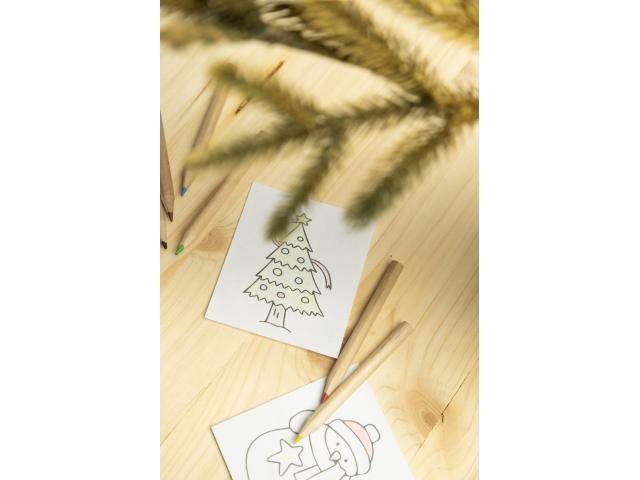 Christmas colouring set with 6 wooden coloured pencils, sharpener and colouring booklet. In kraft paper box.