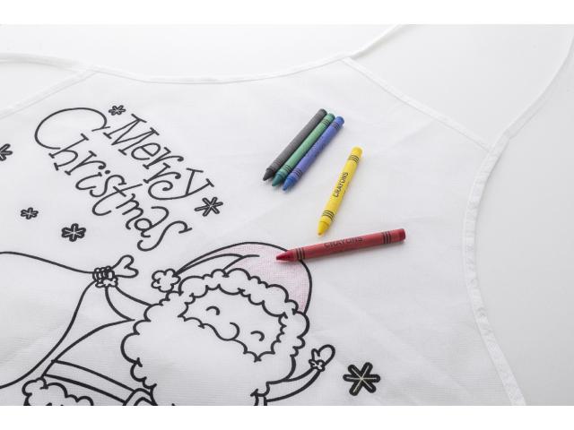 Colouring Christmas apron for children in RPET non-woven with 5 crayons.