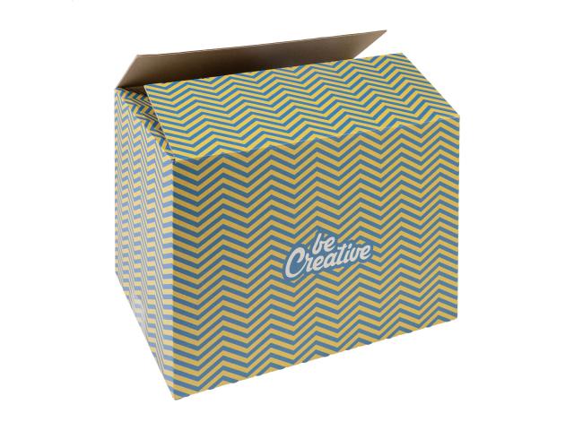 Custom made, full colour printed corrugated cardboard shipping box. Delivered flat-packed, top and bottom must be taped for use. MOQ: 50 pcs.