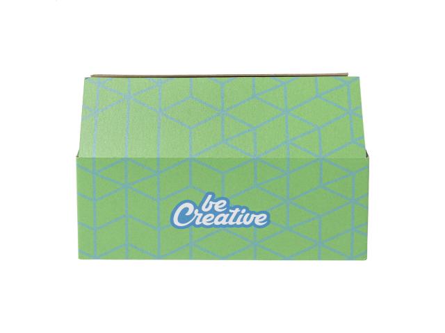 Custom made, full colour printed corrugated cardboard shipping box. Delivered flat-packed, top and bottom must be taped for use. MOQ: 50 pcs.