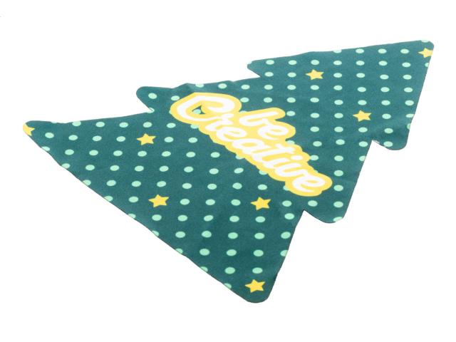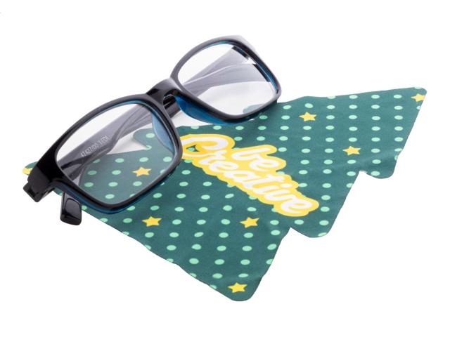Custom made, Christmas tree shaped RPET microfibre (170 g/m²) cleaning cloth for glasses and screens. Price includes sublimation printing. MOQ: 100 pcs.