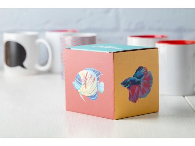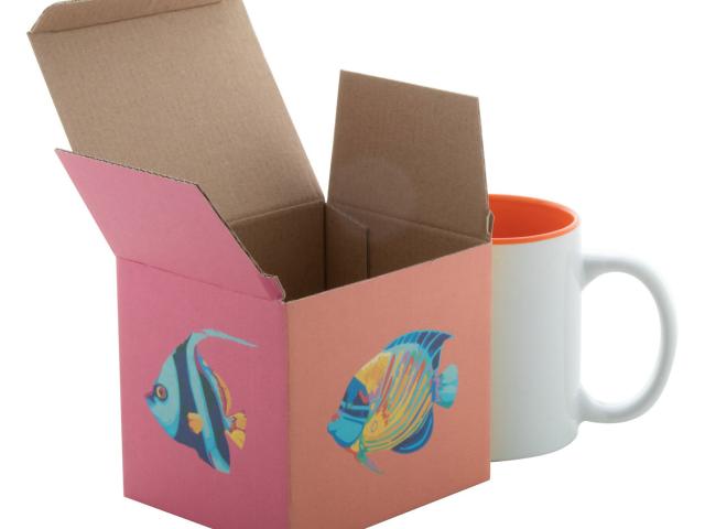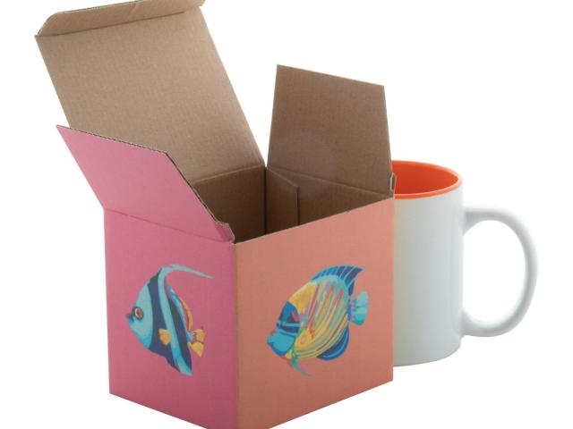 Custom made, full colour printed corrugated cardboard box for 300-350 ml mugs. If the custom box is purchased without the matching product, it will be delivered flat-packed (requiring assembly). MOQ: 50 pcs.