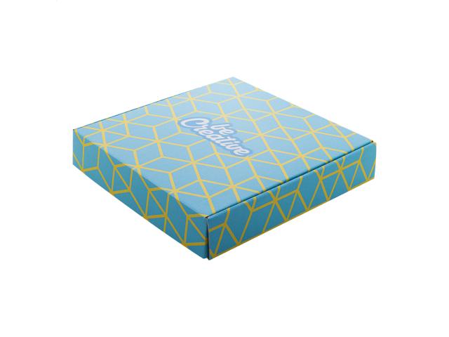 Custom made, full colour printed corrugated cardboard slim postal gift box with self-sealing strip. Delivered flat-packed. MOQ: 50 pcs.