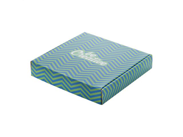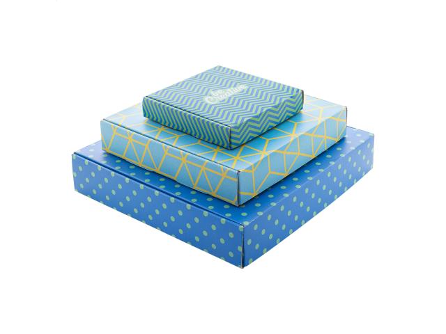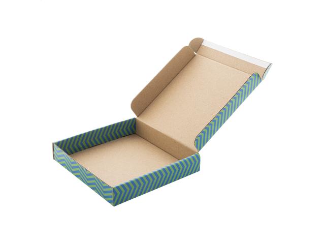 Custom made, full colour printed corrugated cardboard slim postal gift box with self-sealing strip. Delivered flat-packed. MOQ: 50 pcs.