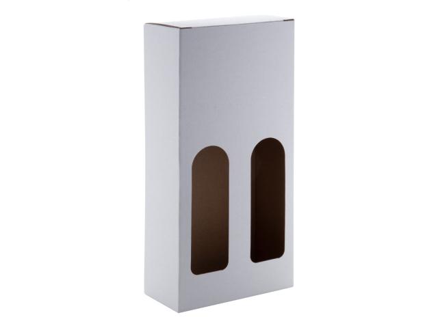 Custom made, full colour printed corrugated cardboard box for two 0,75 l wine bottles. Delivered flat-packed, without wine. MOQ: 50 pcs.