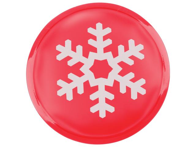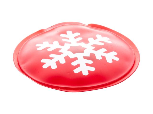 Round shaped reusable heat pack with snowflake decoration.